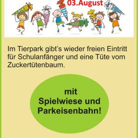 Im Eilenburger Tierpark wartet am 3. August ein Zuckertütenbaum auf zahlreiche Schulanfänger. Das Fest selbst, bei dem sie freien Eintritt haben, beginnt um 13 Uhr. Dann dampft auch die Parkeisenbahn durch den Tierpark.