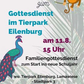 Am Sonntag, dem 11. August, findet ein Familiengottesdienst zum Start ins neue Schuljahr statt. Die Evangelische Kirchengemeinde Martin Rinckart Eilenburg lädt auf die Lamawiese unseres Tierparks ein.