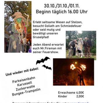 Erlebt seltsame Wesen auf Stelzen, besucht Goliath am Schmiedefeuer oder seid mutig und bewältigt unseren Gruselpfad!