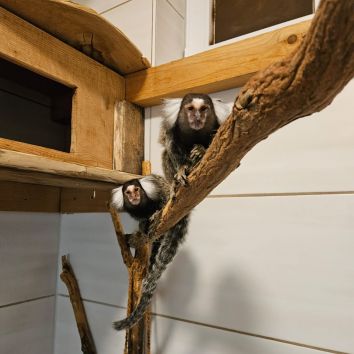 Bei der Suche mussten wir einige Faktoren beachten. Schlussendlich wurden es zwei Weißbüschelaffen-Brüder aus der Auffangstation für Reptilien, München e.V. Ihr Lebensweg war bisher eher holprig, weswegen sie auch einiges an Feingefühl und Zeit benötigten, aber sie haben schnell gemerkt, dass sie es mit uns nicht allzu schlecht getroffen hat und so teilen sie sich sogar schon mit Löwenaffenmännchen Franz das Tropicana.